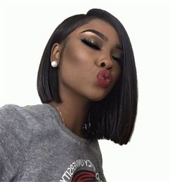 Bob Haircut Human Hair Lace Front Wigs Middle Part Wigs With Baby Hair